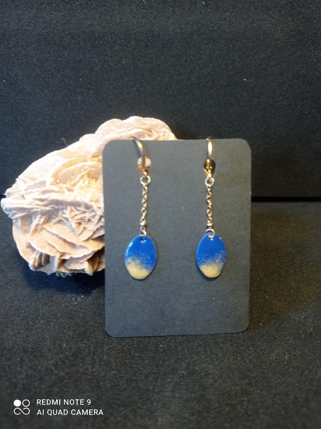 Ovale couleur bleu et or en émaux basse température.