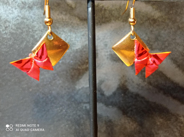 Origami cristallisé en papier rouge et rouge plus profond brillant.