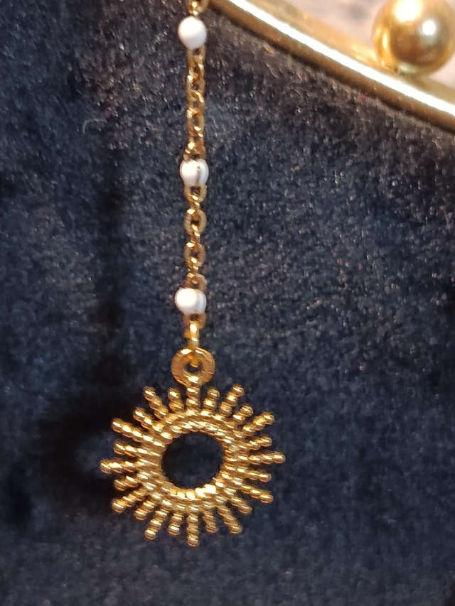 Feuille en émaux bleu profond avec perle de malachite de 3mm.